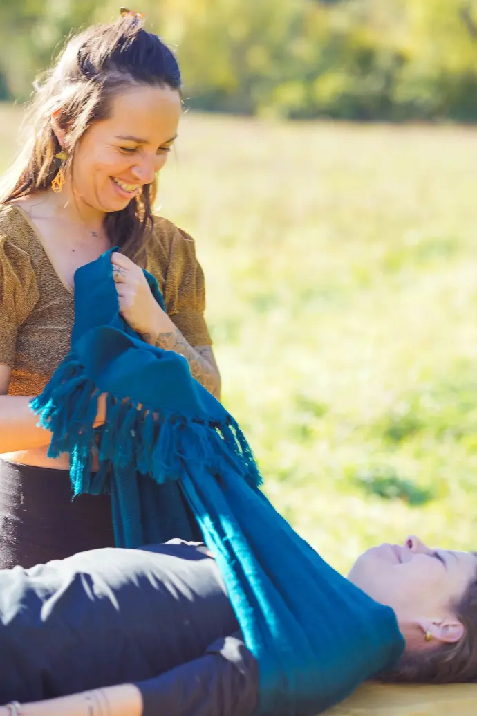 Le Soin Rebozo est un accompagnement traditionnel mexicain, dont on retrouve les semblables dans de nombreuses traditions. Il parle et porte les sagesses ancestrales de la Vie, de la Mort et des Cycles. Il est soutien à notre empuissancement de femme (d’homme) et d’Être au Monde.