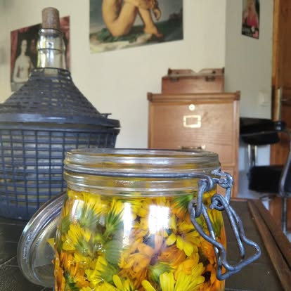 - Sérum macérat immortelle, huiles essentielles immortelle, Achillée millefeuille et romarin pour terminer la séance et se réouvrir lumineux au monde grâce à des plantes solaires, circulatoires et toniques.